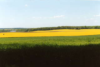 Paisaxe típico de primaveira coa colza e ao fondo un laguiño deses que pode ser que se privatice…